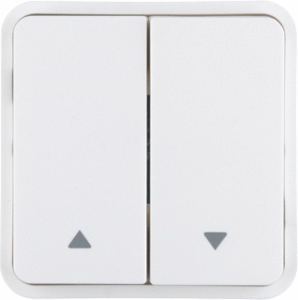 Hager Berker W.1 bed.element / centr.pl. schakelmat., kunststof, wit, breedte 71mm, uitvoering 2-delige wip, gebruik jaloezie, uitvoering oppervlakte mat, opdruk/indicatie symbool"pijlen", beschermingsgraad (IP) IP55, RAL-nummer 9010, geschikt voor bussysteem-toetsaansl, halogeenvrij,
