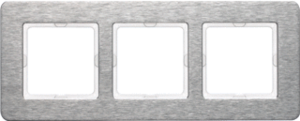 Hager Berker Q.7 afdekraam schakelmateriaal, metaal, roestvaststaal (RVS), (bxhxd) 237.2x95.2x9.9mm, uitvoering oppervlakte mat, montagerichting horizontaal, geschikt voor wandgoot, 3 eenheden, beschermingsgraad (IP) IP20, 3 eenheden horizontaal, slagvastheid IK02, RAL-nummer 9022,