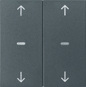 Hager Berker S.1/B.3/B.7 bed.element / centr.pl. schakelmat., kunststof, antraciet, (bxhxd) 55.3x55.3x8.9mm, uitvoering 2-delige wip, gebruik schakelaar/drukker, uitvoering oppervlakte mat, opdruk/indicatie symbool"pijlen", controlevenster/verlicht, beschermingsgraad (IP) IP20, RAL-nummer 7021,