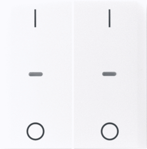Hager Berker S.1/B.3/B.7 bed.element / centr.pl. schakelmat., kunststof, wit, (bxhxd) 55.3x55.3x8.9mm, uitvoering 2-delige wip, gebruik schakelaar/drukker, uitvoering oppervlakte glanzend, opdruk/indicatie 1 - 0, controlevenster/verlicht, beschermingsgraad (IP) IP20, RAL-nummer 9010,