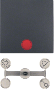 Hager Berker S.1 bed.element / centr.pl. schakelmat., kunststof, antraciet, (bxhxd) 55x55x7mm, uitvoering enkele wip, gebruik schakelaar/drukker, uitvoering oppervlakte mat, controlevenster/verlicht, beschermingsgraad (IP) IP44, RAL-nummer 7021, halogeenvrij, kwaliteit duroplast,