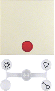 Hager Berker S.1 bed.element / centr.pl. schakelmat., kunststof, wit, (bxhxd) 55x55x7mm, uitvoering enkele wip, gebruik schakelaar/drukker, uitvoering oppervlakte glanzend, controlevenster/verlicht, beschermingsgraad (IP) IP44, RAL-nummer 1013, halogeenvrij, kwaliteit duroplast,