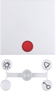 Hager Berker S.1 bed.element / centr.pl. schakelmat., kunststof, wit, (bxhxd) 55x55x7mm, uitvoering enkele wip, gebruik schakelaar/drukker, uitvoering oppervlakte glanzend, controlevenster/verlicht, beschermingsgraad (IP) IP44, RAL-nummer 9010, halogeenvrij, kwaliteit duroplast,