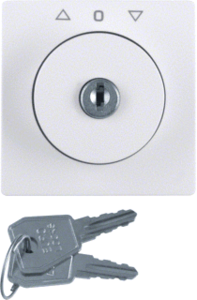 Hager Berker S.1/B.3/B.7 bed.element / centr.pl. schakelmat., kunststof, wit, (bxhxd) 58x58x20mm, uitvoering sleutel, gebruik jaloezie, uitvoering oppervlakte mat, opdruk/indicatie diverse symbolen, beschermingsgraad (IP) IP20, RAL-nummer 9010, halogeenvrij, kwaliteit thermoplast,