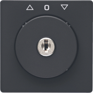 Hager Berker Q.1/Q.3/Q.7 bed.element / centr.pl. schakelmat., kunststof, antraciet, (bxhxd) 58.8x58.8x32.5mm, uitvoering sleutel, gebruik jaloezie, uitvoering oppervlakte mat, opdruk/indicatie diverse symbolen, beschermingsgraad (IP) IP20, RAL-nummer 7021, halogeenvrij, kwaliteit duroplast,