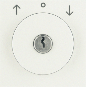 Hager Berker S.1/B.3/B.7 bed.element / centr.pl. schakelmat., kunststof, wit, (bxhxd) 58x58x20mm, uitvoering sleutel, gebruik jaloezie, uitvoering oppervlakte glanzend, opdruk/indicatie diverse symbolen, beschermingsgraad (IP) IP20, RAL-nummer 1013, halogeenvrij, kwaliteit duroplast,