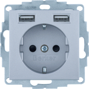 Hager Berker S.1/B.3/B.7 wandcontactdoos (wcd schakelmat.), aluminium, uitvoering contactdoos CEE 7/3 (type, 2 actieve contacten (rond), 1 eenheid, 1 modules (bij modulair sys, 1 fasen, aansluitwijze steekklem, RAL-nummer 9006, geïsoleerde montage