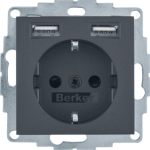 Hager Berker S.1/B.3/B.7 wandcontactdoos (wcd schakelmat.), antraciet, 2 actieve contacten (rond), 1 eenheid, 1 modules (bij modulair sys, 1 fasen, aansluitwijze steekklem, RAL-nummer 7021, geïsoleerde montage