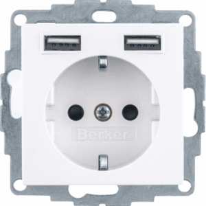 Hager Berker S.1/B.3/B.7 wandcontactdoos (wcd schakelmat.), wit, uitvoering contactdoos CEE 7/3 (type, 2 actieve contacten (rond), 1 eenheid, 1 fasen, aansluitwijze steekklem, RAL-nummer 9010, geïsoleerde montage