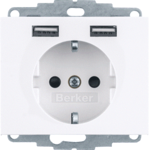 Hager Berker K.1 wandcontactdoos (wcd schakelmat.), wit, uitvoering contactdoos CEE 7/3 (type, 2 actieve contacten (rond), 1 eenheid, 1 fasen, aansluitwijze steekklem, RAL-nummer 9010, geïsoleerde montage