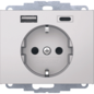 Hager Berker wandcontactdoos (wcd schakelmat.), aluminium, uitvoering contactdoos CEE 7/3 (type, 2 actieve contacten (rond), 1 eenheid, 1 fasen, aansluitwijze steekklem, met verhoogde aanraakbeveiliging, RAL-nummer 9006, geïsoleerde montage