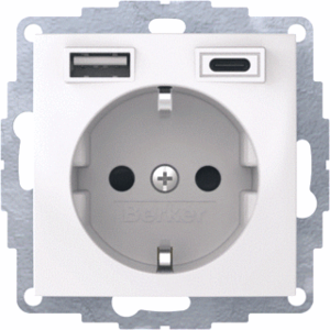 Hager Berker wandcontactdoos (wcd schakelmat.), wit, uitvoering contactdoos CEE 7/3 (type, 2 actieve contacten (rond), 1 eenheid, 1 fasen, aansluitwijze steekklem, met verhoogde aanraakbeveiliging, RAL-nummer 9010, geïsoleerde montage