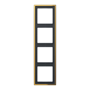 Jung LS RANGE afdekraam schakelmateriaal, metaal, goud, (bxhxd) 81x294x11mm, uitvoering oppervlakte glanzend, montagerichting horizontaal en verticaal, geschikt voor wandgoot, 4 eenheden, beschermingsgraad (IP) IP44, 1 eenheden horizontaal, kwaliteit overig, geschikt voor inbouwinstallatie (ge,
