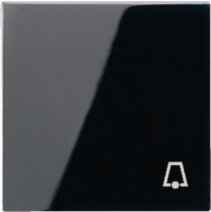 Jung A RANGE bed.element / centr.pl. schakelmat., kunststof, zwart, uitvoering enkele wip, gebruik schakelaar/drukker, uitvoering oppervlakte glanzend, opdruk/indicatie symbool"bel", beschermingsgraad (IP) IP44, RAL-nummer 9005, halogeenvrij, kwaliteit duroplast, oppervlaktebescherming overig