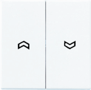Jung A500 bed.element / centr.pl. schakelmat., kunststof, wit, uitvoering 2-delige wip, gebruik jaloezie, uitvoering oppervlakte glanzend, opdruk/indicatie symbool"pijlen", beschermingsgraad (IP) IP44, RAL-nummer 9016, geschikt voor bussysteem-toetsaansl, halogeenvrij, kwaliteit duroplast,