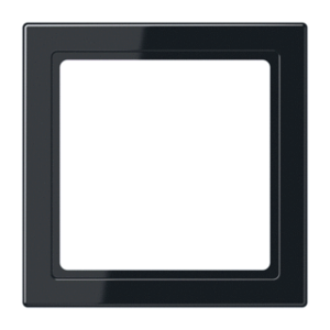 Jung LS RANGE afdekraam schakelmateriaal, kunststof, zwart, (bxhxd) 70.5x70.5x7.9mm, uitvoering oppervlakte glanzend, montagerichting horizontaal en verticaal, 1 eenheid, beschermingsgraad (IP) overig, 1 eenheden horizontaal, RAL-nummer 9005, kwaliteit thermoplast, met montageraam,