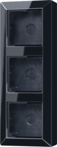 Jung A RANGE opbouwbak inbouwschakelmateriaal, kunststof, zwart, samenstelling opbouwbak, montagerichting horizontaal en verticaal, beschermingsgraad (IP) IP44, 3 eenheden, met kabelinvoer, met afdekraam, uitvoering oppervlakte glanzend, met kanaalinvoering, schakelmateriaaldiepte 47mm,