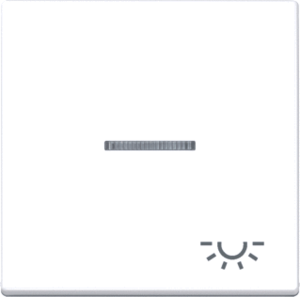 Jung A RANGE bed.element / centr.pl. schakelmat., kunststof, wit, uitvoering enkele drukker, gebruik schakelaar/drukker, uitvoering oppervlakte glanzend, opdruk/indicatie symbool"licht", controlevenster/verlicht, beschermingsgraad (IP) IP44, RAL-nummer 9016, halogeenvrij, kwaliteit duroplast,