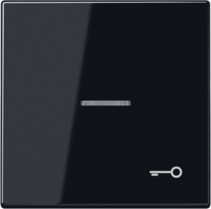 Jung LS RANGE bed.element / centr.pl. schakelmat., kunststof, zwart, uitvoering enkele drukker, gebruik schakelaar/drukker, uitvoering oppervlakte glanzend, opdruk/indicatie symbool"sleutel/deur", controlevenster/verlicht, beschermingsgraad (IP) IP44, RAL-nummer 9005,