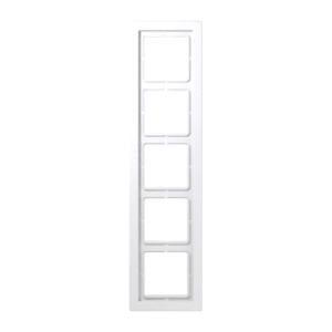 Jung LS RANGE afdekraam schakelmateriaal, kunststof, wit, (bxhxd) 96x380x11mm, uitvoering oppervlakte glanzend, montagerichting horizontaal en verticaal, geschikt voor wandgoot, 5 eenheden, beschermingsgraad (IP) IP44, 1 eenheden horizontaal, RAL-nummer 9016, kwaliteit duroplast,