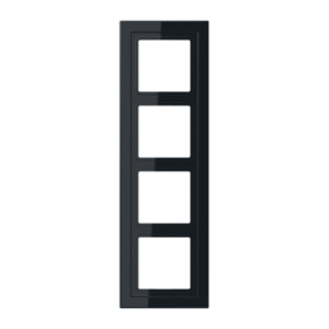 Jung LS RANGE afdekraam schakelmateriaal, kunststof, zwart, (bxhxd) 96x309x11mm, uitvoering oppervlakte glanzend, montagerichting horizontaal en verticaal, geschikt voor wandgoot, 4 eenheden, beschermingsgraad (IP) IP44, 1 eenheden horizontaal, RAL-nummer 9005, kwaliteit duroplast,