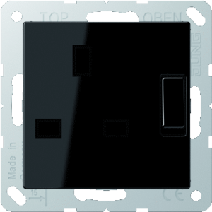 Jung wandcontactdoos (wcd schakelmat.), zwart, uitvoering british Standard, 2 actieve contacten (rond), 1 eenheid, 1 contactdozen schakelbaar, 1 fasen, aansluitwijze schroefklem, met verhoogde aanraakbeveiliging, RAL-nummer 9005