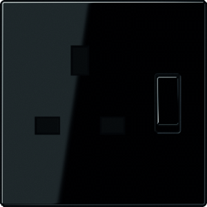 Jung wandcontactdoos (wcd schakelmat.), zwart, uitvoering british Standard, 2 actieve contacten (rond), 1 eenheid, 1 contactdozen schakelbaar, 1 fasen, aansluitwijze schroefklem, met verhoogde aanraakbeveiliging, RAL-nummer 9005