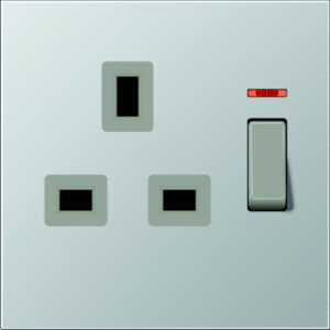 Jung wandcontactdoos (wcd schakelmat.), aluminium, uitvoering british Standard, 2 actieve contacten (rond), 1 eenheid, 1 contactdozen schakelbaar, 1 fasen, aansluitwijze schroefklem, met verhoogde aanraakbeveiliging, met functieverlichting