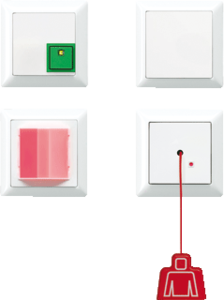 Jung AS500 miva schakelmateriaal set compleet, wit, inbouw (U40) inbouwdoos, nom. spanning DC 24V, incl. geruststellampje LED 24V, variant afdekplaat alpine wit, RAL-nummer 9016, schakelmateriaalbreedte 55mm, schakelmateriaalhoogte 55mm, spanningstype DC, uitvoering kamerlamp LED