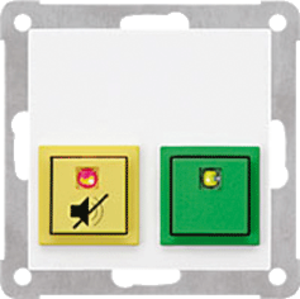 Jung AS500 miva schakelmateriaal overig, crème-wit/elektrowit, inbouw (U40) inbouwdoos, nom. spanning DC 24V, incl. geruststellampje LED 24V, bedieningsknop geel/Groen, variant afdekplaat wit, RAL-nummer 1013, schakelmateriaalbreedte 55mm, schakelmateriaalhoogte 55mm, spanningstype DC,