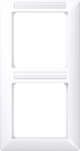 Jung afdekraam schakelmateriaal, kunststof, wit, (bxhxd) 80.5x151.5x10mm, uitvoering oppervlakte glanzend, montagerichting verticaal, geschikt voor wandgoot, tekstveld/beschrijvingsvlak, 2 eenheden, beschermingsgraad (IP) IP44, 1 eenheden horizontaal, RAL-nummer 9016, kwaliteit thermoplast,