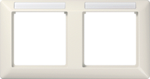 Jung afdekraam schakelmateriaal, kunststof, wit, (bxhxd) 151.5x80.5x10mm, uitvoering oppervlakte glanzend, montagerichting horizontaal, geschikt voor wandgoot, tekstveld/beschrijvingsvlak, 2 eenheden, beschermingsgraad (IP) IP44, 2 eenheden horizontaal, RAL-nummer 1013, kwaliteit thermoplast,