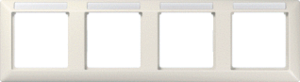 Jung afdekraam schakelmateriaal, kunststof, wit, (bxhxd) 293.5x80.5x10mm, uitvoering oppervlakte glanzend, montagerichting horizontaal, geschikt voor wandgoot, tekstveld/beschrijvingsvlak, 4 eenheden, beschermingsgraad (IP) IP44, 4 eenheden horizontaal, RAL-nummer 1013, kwaliteit thermoplast,