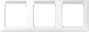 Jung afdekraam schakelmateriaal, kunststof, wit, (bxhxd) 222.5x80.5x10mm, uitvoering oppervlakte glanzend, montagerichting horizontaal, geschikt voor wandgoot, tekstveld/beschrijvingsvlak, 3 eenheden, beschermingsgraad (IP) IP44, 3 eenheden horizontaal, RAL-nummer 9016, kwaliteit thermoplast,