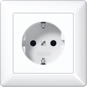 Jung wandcontactdoos (wcd schakelmat.), wit, uitvoering contactdoos CEE 7/3 (type, 2 actieve contacten (rond), 1 eenheid, 1 fasen, aansluitwijze steekklem, met verhoogde aanraakbeveiliging, RAL-nummer 9016