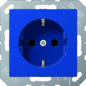 Jung wandcontactdoos (wcd schakelmat.), blauw, uitvoering contactdoos CEE 7/3 (type, 2 actieve contacten (rond), 1 eenheid, 1 fasen, aansluitwijze steekklem, met verhoogde aanraakbeveiliging, RAL-nummer 5013