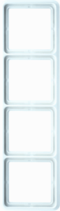 Jung CD500 afdekraam schakelmateriaal, kunststof, wit, (bxhxd) 81x294x10mm, uitvoering oppervlakte glanzend, variant alpine wit, montagerichting horizontaal en verticaal, geschikt voor wandgoot, 4 eenheden, beschermingsgraad (IP) IP44, 1 eenheden horizontaal, RAL-nummer 9016, kwaliteit duroplast,