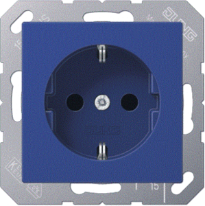 Jung wandcontactdoos (wcd schakelmat.), blauw, uitvoering contactdoos CEE 7/3 (type, 2 actieve contacten (rond), 1 eenheid, 1 fasen, aansluitwijze steekklem, met verhoogde aanraakbeveiliging, RAL-nummer 5013