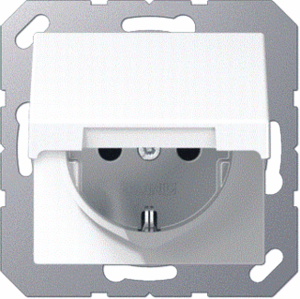 Jung wandcontactdoos (wcd schakelmat.), wit, uitvoering contactdoos CEE 7/3 (type, 2 actieve contacten (rond), 1 eenheid, 1 fasen, aansluitwijze steekklem, met klapdeksel, met verhoogde aanraakbeveiliging, RAL-nummer 9016