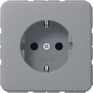 Jung wandcontactdoos (wcd schakelmat.), grijs, uitvoering contactdoos CEE 7/3 (type, 2 actieve contacten (rond), 1 eenheid, 1 fasen, aansluitwijze steekklem, RAL-nummer 7038