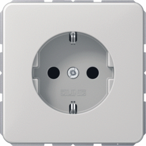 Jung wandcontactdoos (wcd schakelmat.), grijs, uitvoering contactdoos CEE 7/3 (type, 2 actieve contacten (rond), 1 eenheid, 1 fasen, aansluitwijze steekklem, met verhoogde aanraakbeveiliging, RAL-nummer 7035