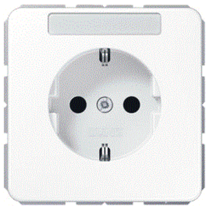 Jung wandcontactdoos (wcd schakelmat.), wit, uitvoering contactdoos CEE 7/3 (type, 2 actieve contacten (rond), 1 eenheid, 1 fasen, aansluitwijze steekklem, tekstveld/beschrijvingsvlak, RAL-nummer 9016