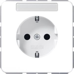 Jung wandcontactdoos (wcd schakelmat.), wit, uitvoering contactdoos CEE 7/3 (type, 2 actieve contacten (rond), 1 eenheid, 1 fasen, aansluitwijze steekklem, met verhoogde aanraakbeveiliging, tekstveld/beschrijvingsvlak, RAL-nummer 9016