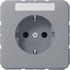 Jung wandcontactdoos (wcd schakelmat.), grijs, uitvoering contactdoos CEE 7/3 (type, 2 actieve contacten (rond), 1 eenheid, 1 fasen, aansluitwijze steekklem, met verhoogde aanraakbeveiliging, tekstveld/beschrijvingsvlak, RAL-nummer 7038