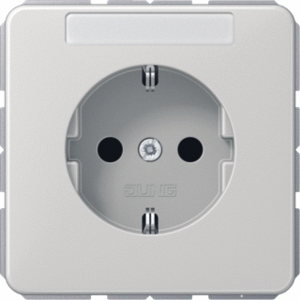 Jung wandcontactdoos (wcd schakelmat.), grijs, uitvoering contactdoos CEE 7/3 (type, 2 actieve contacten (rond), 1 eenheid, 1 fasen, aansluitwijze steekklem, met verhoogde aanraakbeveiliging, tekstveld/beschrijvingsvlak, RAL-nummer 7035
