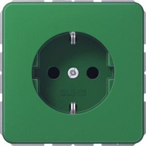 Jung wandcontactdoos (wcd schakelmat.), groen, uitvoering contactdoos CEE 7/3 (type, 2 actieve contacten (rond), 1 eenheid, 1 fasen, aansluitwijze steekklem, met verhoogde aanraakbeveiliging, RAL-nummer 6029