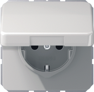 Jung wandcontactdoos (wcd schakelmat.), grijs, uitvoering contactdoos CEE 7/3 (type, 2 actieve contacten (rond), 1 eenheid, 1 fasen, aansluitwijze steekklem, met klapdeksel, RAL-nummer 7035