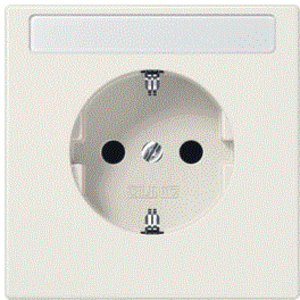 Jung wandcontactdoos (wcd schakelmat.), crème-wit/elektrowit, uitvoering contactdoos CEE 7/3 (type, 2 actieve contacten (rond), 1 eenheid, 1 fasen, aansluitwijze steekklem, met verhoogde aanraakbeveiliging, tekstveld/beschrijvingsvlak, RAL-nummer 1013