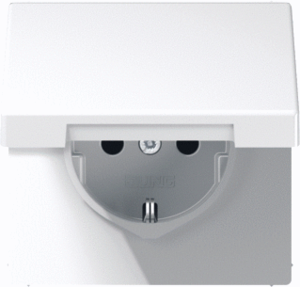 Jung wandcontactdoos (wcd schakelmat.), wit, uitvoering contactdoos CEE 7/3 (type, 2 actieve contacten (rond), 1 eenheid, 1 fasen, aansluitwijze steekklem, met klapdeksel, RAL-nummer 9016