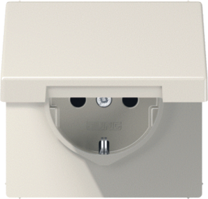 Jung wandcontactdoos (wcd schakelmat.), crème-wit/elektrowit, uitvoering contactdoos CEE 7/3 (type, 2 actieve contacten (rond), 1 eenheid, 1 fasen, aansluitwijze steekklem, met klapdeksel, met verhoogde aanraakbeveiliging, RAL-nummer 1013